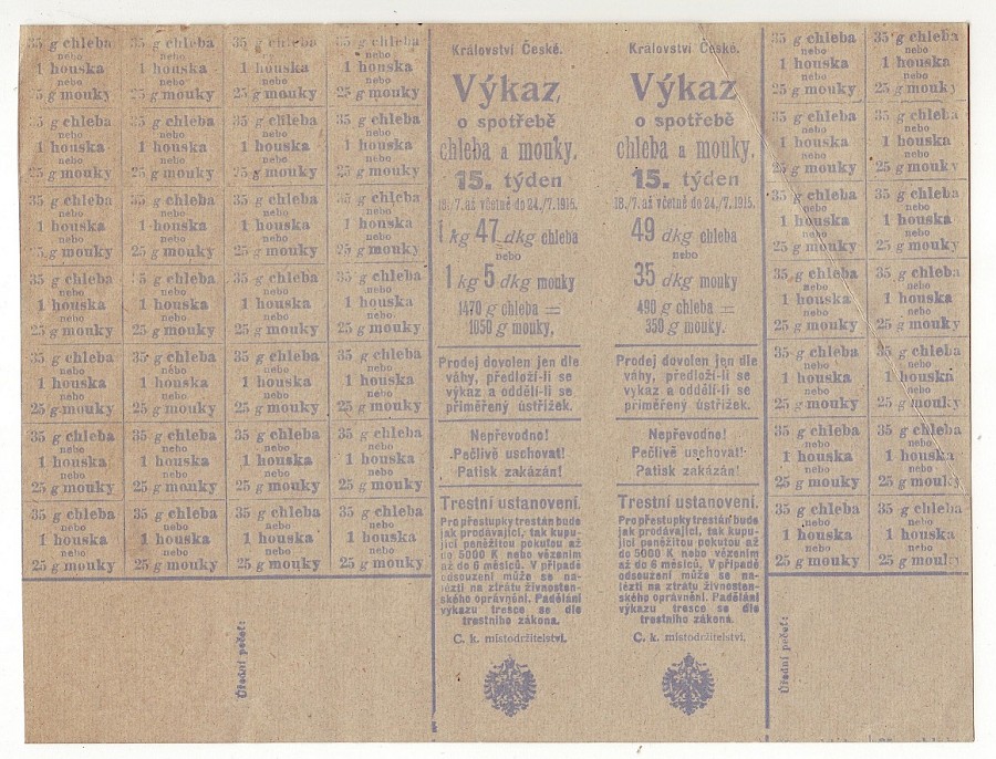 Výkaz o spotřebě chleba a mouky 15.týden,nekompletní + částečný Vinohrady