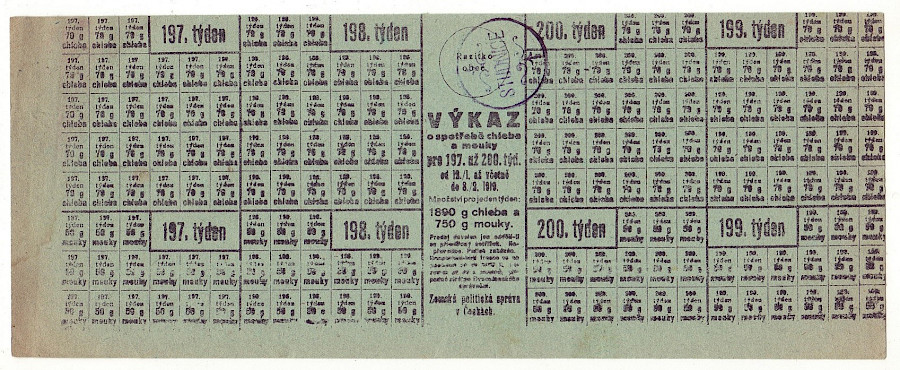 Výkaz o spotřebě chleba a mouky 197. až 200. týden,Louny + Studnice