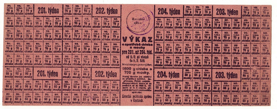 Výkaz o spotřebě chleba a mouky 201. až 204. týden,Studnice