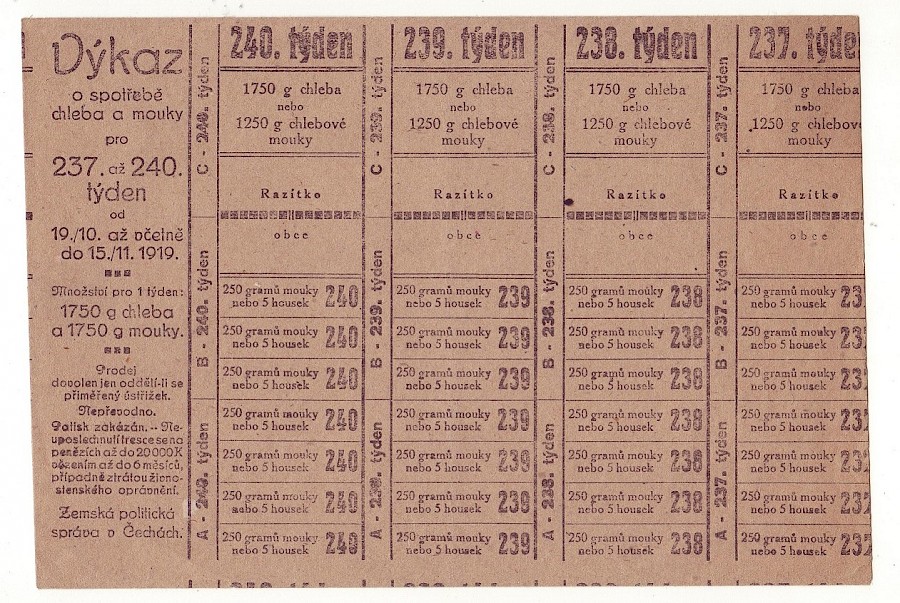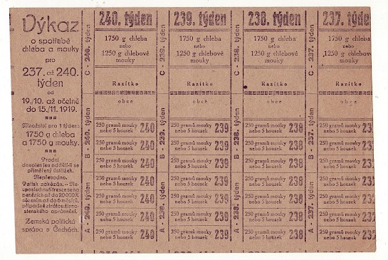Výkaz o spotřebě chleba a mouky 237 až 240. týden