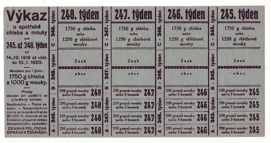 Výkaz o spotřebě chleba a mouky 245. až 248. týden
