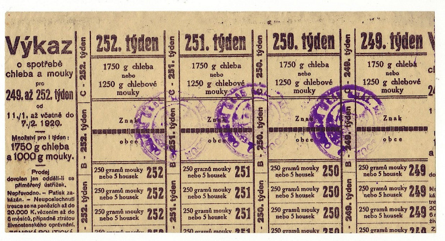 Výkaz o spotřebě chleba a mouky 249. až 252. týden,Louny