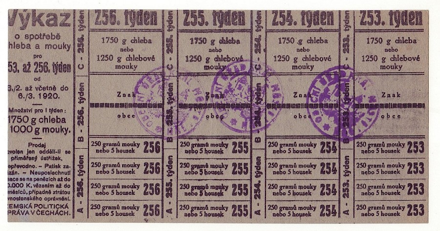 Výkaz o spotřebě chleba a mouky 253. až 256. týden,Louny