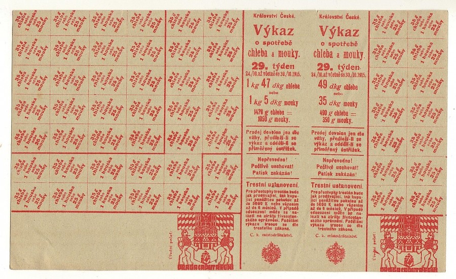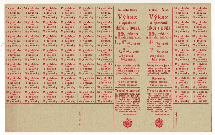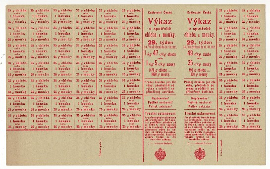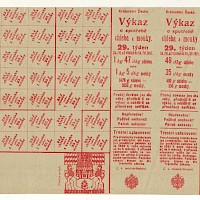 Výkaz o spotřebě chleba a mouky 29.týden,dva lístky - druhý je verze pro Prahu(tisk zešikma)