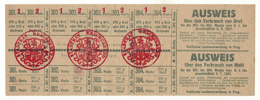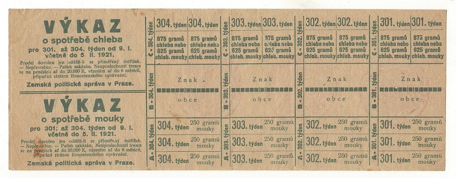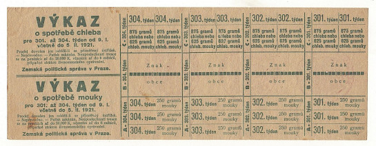 Výkaz o spotřebě chleba a mouky 301. až 304. týden,oboustranný,česko-německý,Liberec