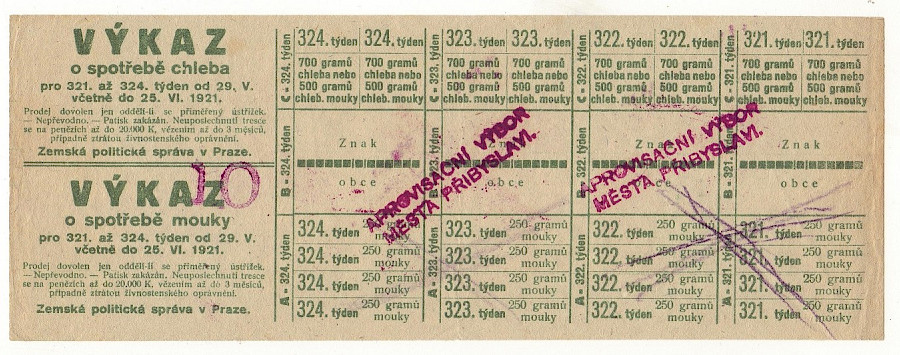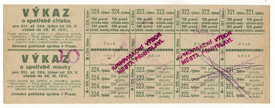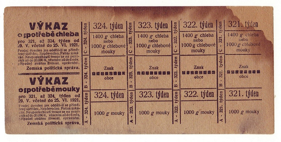 Výkaz o spotřebě chleba a mouky 321. až 324. týden,dvě varianty lístku