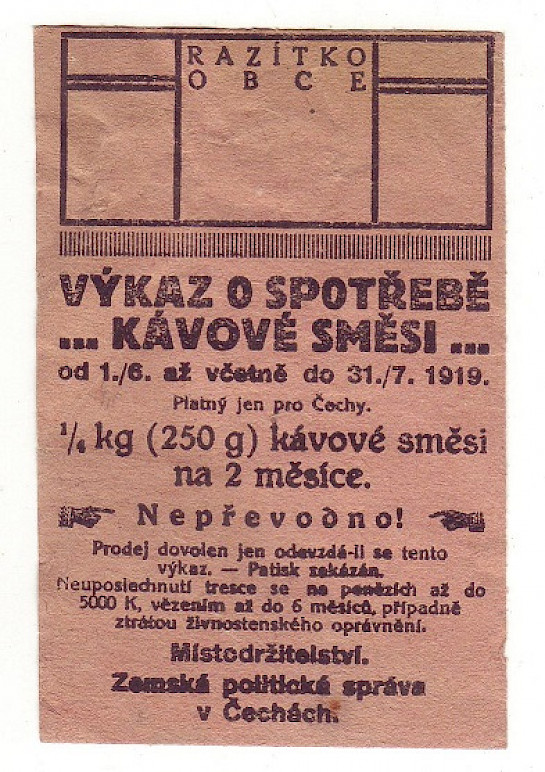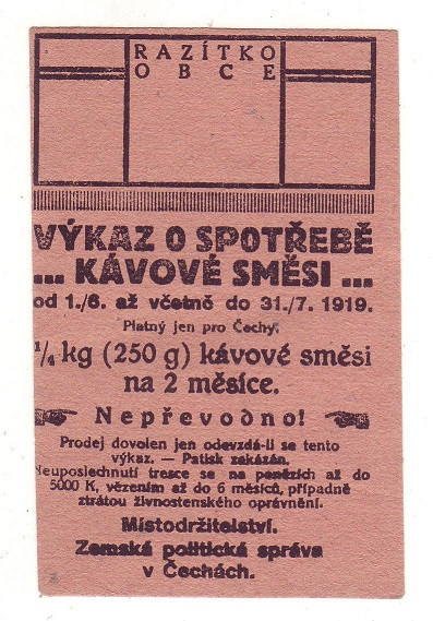 Výkaz o spotřebě kávové směsi 1.6.1918. až 31.7.1919 , dva totožné lístky