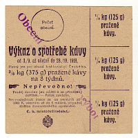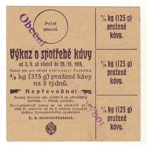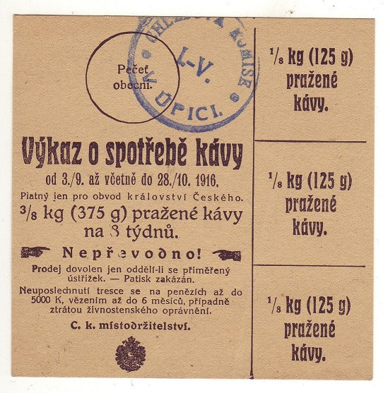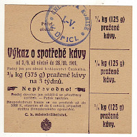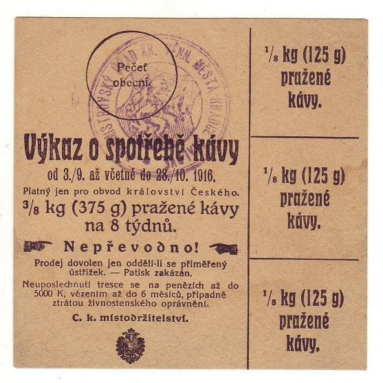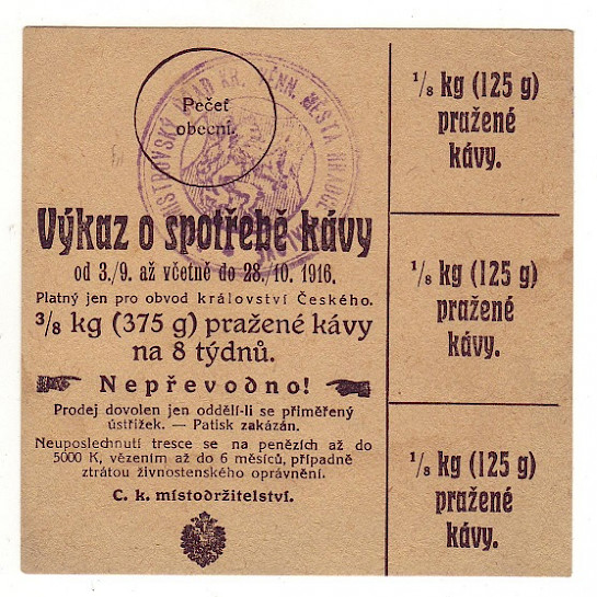 Výkaz o spotřebě kávy 3.9. až 28.10.1916 , tři totožné lístky , různá razítka